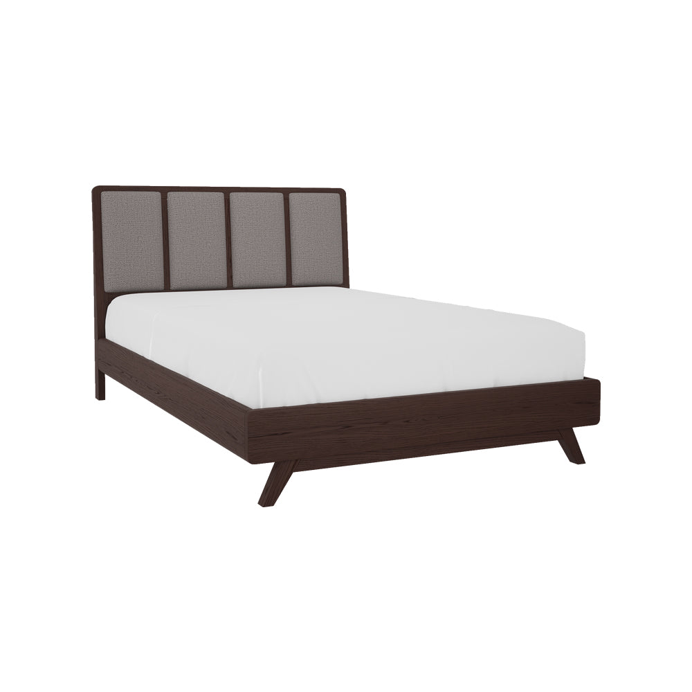 Inspired by strong lines found in architectural structures, the Merced collection features curves and powerful edges that give each piece a unique and classic elegance. This bed features a tall headboard mingled with wood and upholstery to provide comfort while maintaining a modern edge. Unsure about color? Order a color swatch here.
