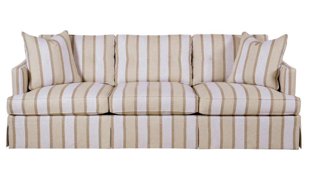 The Meredith Made To Measure® takes inspiration from sleek, modern American upholstery from the 1950’s. Updated with a beautiful dressmaker skirt, a simple yet elegant button detail on the back and petite footprint, David envisions the Meredith as a perfect sofa for a smaller seating area, like in a bedroom or study. “It’s not too big, but sits bigger than it looks,” he says. “It’s comfortable and classic.” Two 20-inch goose feather throw pillows are standard when ordered in fabric. Three Spring-Down seat cushions are standard. Sizes available W30"-120". Size Shown W90" D35.35" H32.25" A companion lounge chair and swivel chair are also available.