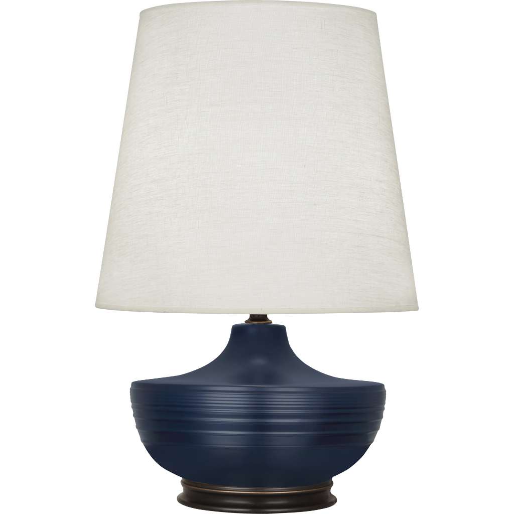 Matte Midnight Blue Glazed Ceramic And Deep Patina Bronze Accents