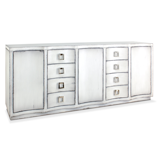 Finish: Vintage WhiteHardware: Cicero Drop Pull in Polished NickelInterior: Six (6) Adjustable ShelvesWidth: 82” | Height: 34.5” | Depth: 21”Available in all OBD finishes.Custom sizes available.