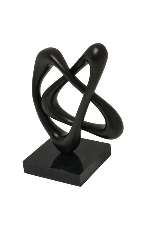 W 11 D 7 H 15 Dark Bronze Finished Cast Resin Abstract Sculpture on Black Waxstone Inlaid Base In Stock Buy Now