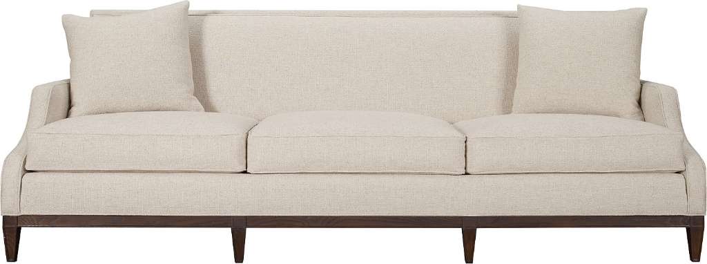 The Monroe upholstery series has an Edwardian-inspired shape with French Moderne details including the wooden ash banding around the base and gracefully tapered solid ash legs. The series includes an 84-inch sofa with two seat cushions and three front posts and a 96-inch sofa with three seat cushions and four front posts, a chair, and an ottoman. The Monroe series is standard with welt trim. Two 22-inch 100% goose feather throw pillows standard in fabric. When ordering this item in leather, please note that pillows are not included and must be purchased separately. To match the standard pillows included with the fabric version, order an additional quantity of pillow SKU HC922-96. 3-piece Luxury Spring-Down seat cushion standard.