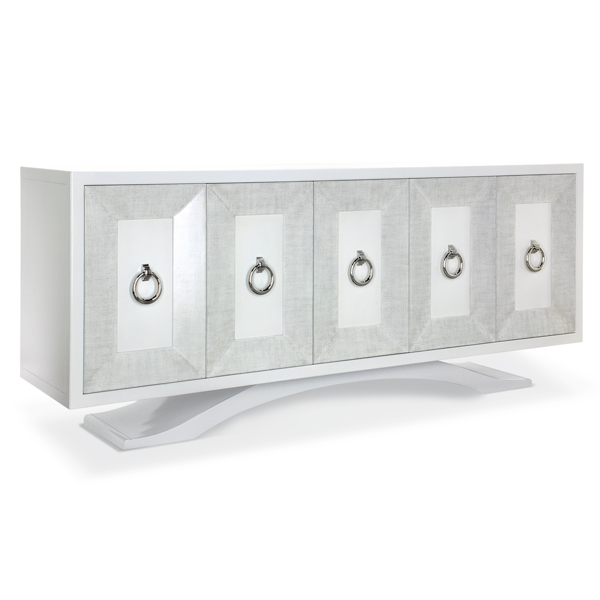 Shown in Stark White with Silver Moon Silk Doors · Hardware: Chrome Belgium Pulls