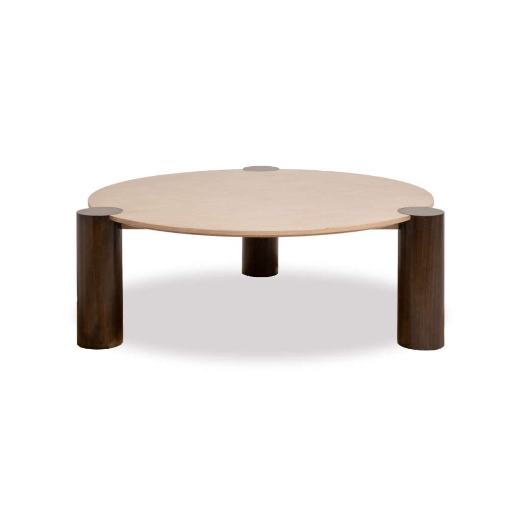 Top Finish: Oak ClaroTop Wood Species: OakLegs Finish: Dark ChocolateLegs Wood Species: MapleDiameter: 48" | Height: 18"Available in all OBD FinishesCustom sizes available