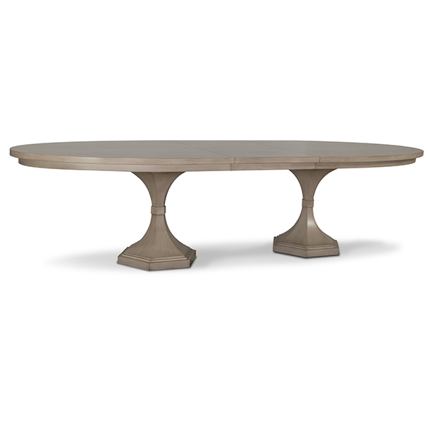 Wood Finish: Coconut Distress Level: Light Length: 96" | Width: 46" | Height: 30" Base Width at Bottom: 22" | Distance between Pedestal Bases: 24"Length with (1) 24" Leaf: 120"Available in all OBD FinishesCustom sizes available