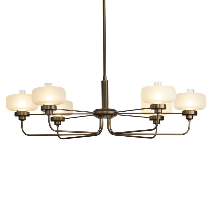 Part of the New Traditional Collection. "Mid-century Victorian meets mid-century modern" in this contemporary take on the classic hurricane glass chandelier. Providing an innovatively fresh look on a classic, the Nola embodies New Traditional style.