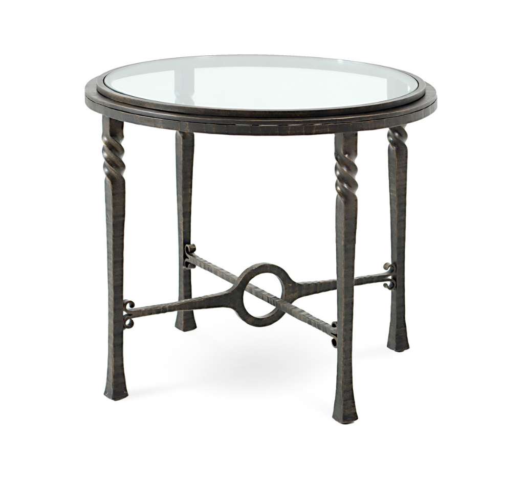 The unique crafting of our Omega Round End Table features hand-twisted legs as well as unique stretchers, with one crossing through another. This lends a modern slant to the antique, hand-hammered piece. Designed by John Winer and available with a glass or maple top, it will be a singular piece in any room in your home.
