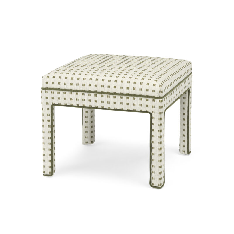 Design a bench or ottoman to fit your space and style with Custom Choices. View the customizable program through the collection link. Ottoman shown O11 22″ Square B Border Top 1 Plain PR Parsons Base