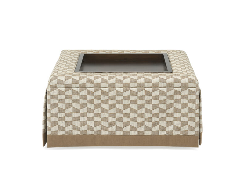 Design a bench or ottoman to fit your space and style with Custom Choices. View the customizable program through the collection link. Ottoman shown O12 36″ Square B Border Top 2 24″ Inset Tray with 12″ Deep Storage Cavity SK Skirted Base