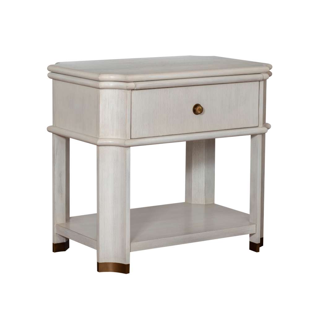 The Owings Nightstand/Side Table features stylish chamfered corner details, curved legs, and fabulous Aged Brass sabots. Always inspired by haberdashery, the hardware, David says, are “chunky knobs meant to look like big brass buttons.” Functionally, the Owings is versatile. “The side table also makes a perfect nightstand. We added a pull-out breadboard-style tray, which I think is a bedside essential.” The drawer has been fitted with soft-close guides. The Owings side table and its companion writing table are crafted from fine American Ash and are fitted with Aged Brass ferrules and hardware. . Optional finishes are available as HC3473-70.