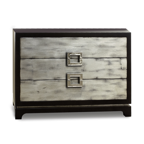 Shown in Tavern Expresso and Silver LeafHardware: Custom ChromeWidth: 46” | Height: 32” | Depth: 19”