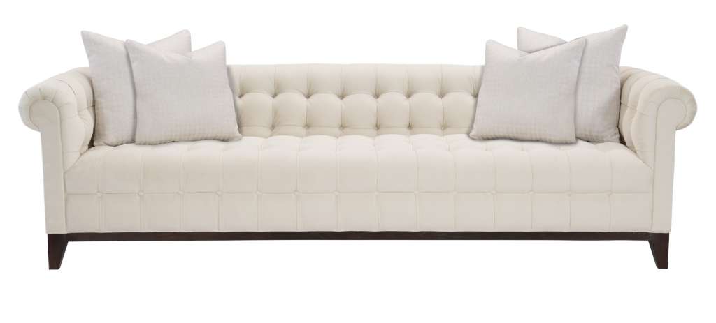 The Parker Sofa is a modern Chesterfield Sofa featuring not only hand-tufting on the in-back and in-arms on the seat but also continues on the seat. The craftsmen at Hickory Chair hand-tie each deep biscuit-tuft with buttons to create this comfortable sofa. This masculine tufted sofa has an exposed trim base and stiletto-inspired tapered legs made from American Ash. The tension created by the masculine tufting and the elegant base make for a modern version of this truly classic form that has stood the test of time. When ordering this item in leather, please note that pillows are not included and must be purchased separately. To match the standard pillows included with the fabric version, order an additional quantity of pillow SKU HC920-96 and HC922-96. Shown in Ebony finish.