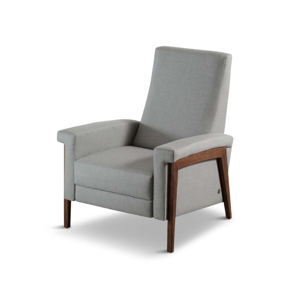 The Quinton is a beautiful blend of style and comfort. Choose from stunning Natural Walnut of Gray Ash legs to complete the look. Guests may not realize that there is a recliner concealed in the Quinton. It allows for a delightful surprise in discovering the simple recline function, which easily engages with a simple push back motion.