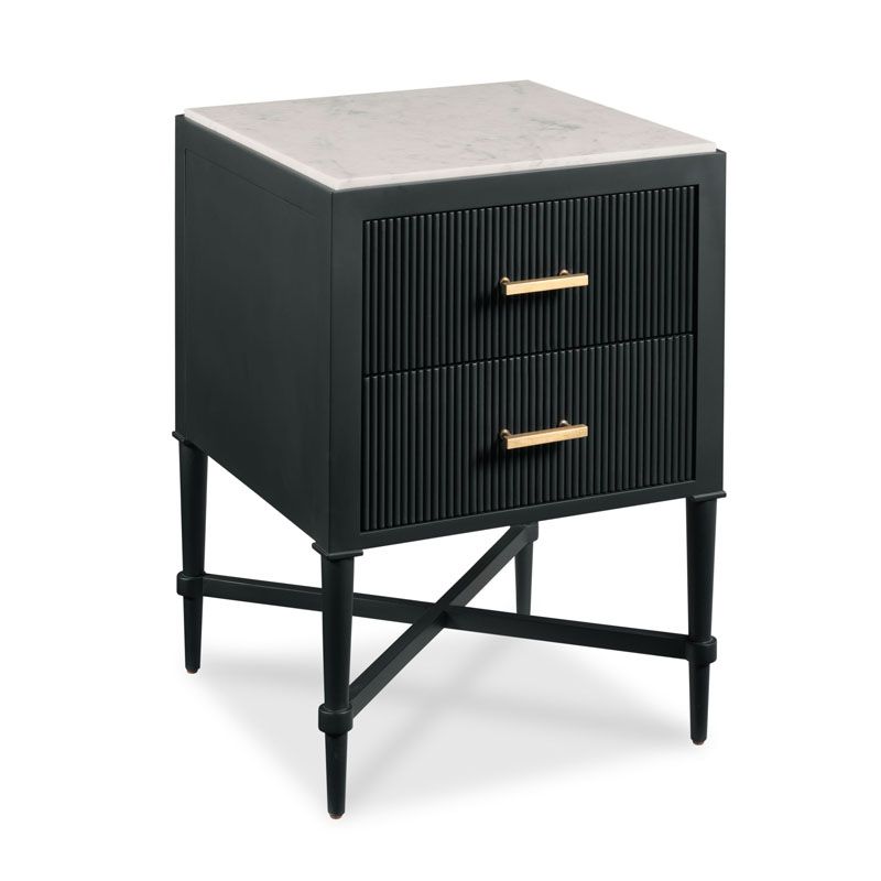This new introduction bedside table marries traditional craftsmanship with modern materials, creating a striking and functional piece for your bedroom. The wood fluting and polished Carrara marble top combine both form and function.
