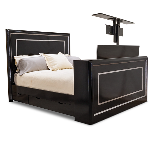 With TV LiftFinish: OnyxInset Panels: Silver LeafLength: 99” | Width: 83”Headboard Height: 70”Footboard Height: 42”Footboard Depth: 15”Frame Height: 11.25”