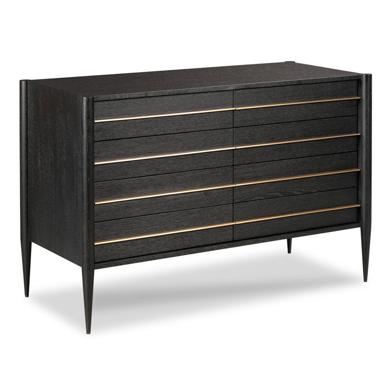 This wonderfully functional modernized chest is inspired by classical forms from 19th century Italy. The crisp geometric profile houses eight individual drawers elevated on graceful tapering legs.