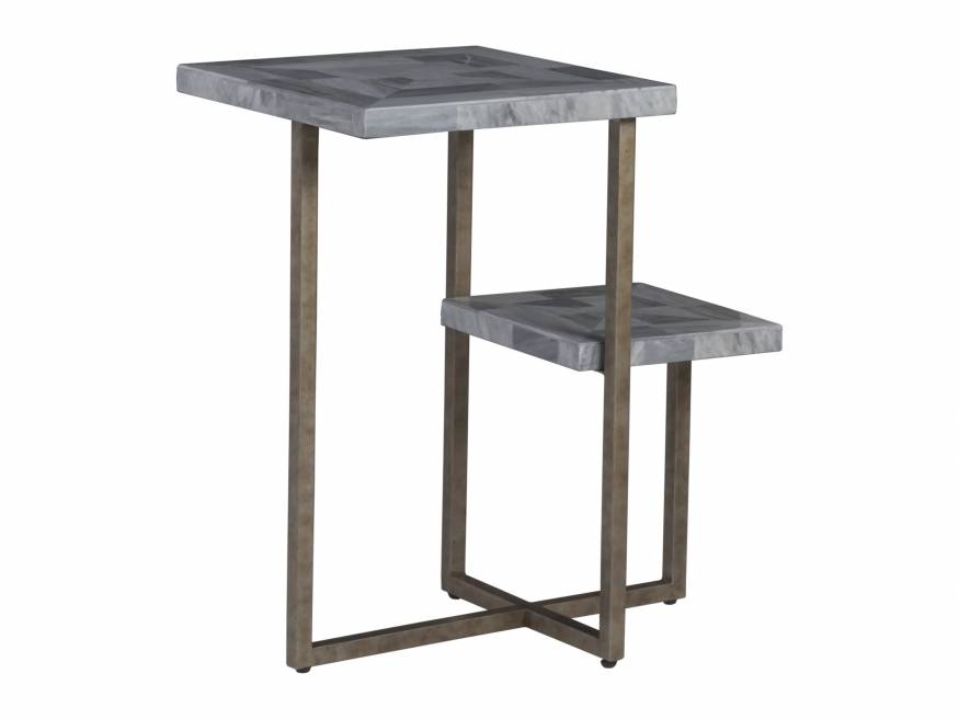 Functional stepped design, with Grey Mist fossil stone in a concentric pattern. The iron base in finished in antiqued silver leaf. Stone is a product of nature and may vary from piece to piece.