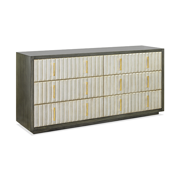 Body Finish: Sheer SapphireDrawer Fronts: PalmHardware: Saville Pulls in Polished Brass Width: 72” | Height: 36” | Depth: 21”Available in all OBD FinishesCustom sizes available