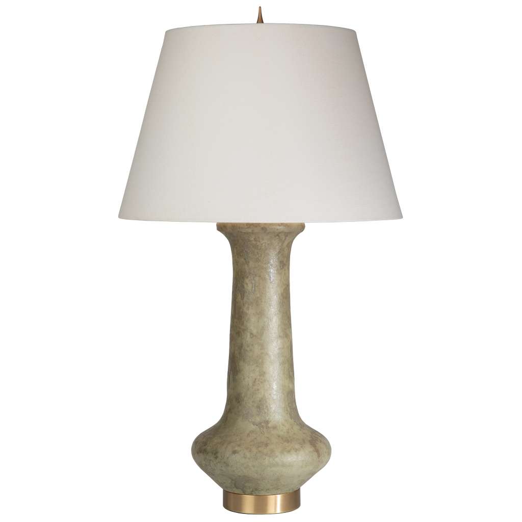 59038- SHAMROCK Height: 32″H Media: Pottery Finish: Green Reactive Glaze Mounting: antique brass plated steel SHAMROCK Shade Options: 89015 – 16x17x11″ Round Drum Sailcloth White 89106 – 12x18x12″ Round Canted Sailcloth White 89015 – 16x17x11″ Round Drum Sailcloth White 89106 – 12x18x12″ Round Canted Sailcloth White Reactive Glaze Reactive glaze is a type of glaze that undergoes a chemical reaction during firing, creating a unique pattern or color. The glaze is made from different raw materials, including organic, mineral, or metallic, and then applied to the pottery piece after biscuit firing. The glaze is then smooth-fired, which results in a unique finish that can’t be predicted. This means that no two pieces of reactive glaze pottery are identical, and each piece has a unique appearance with features like blemishes, dimples, aesthetic cracking, and unevenness to the touch. Reactive Glaze Reactive glaze is a type of glaze that undergoes a chemical reaction during firing, creating a unique pattern or color. The glaze is made from different raw materials, including organic, mineral, or metallic, and then applied to the pottery piece after biscuit firing. The glaze is then smooth-fired, which results in a unique finish that can’t be predicted. This means that no two pieces of reactive glaze pottery are identical, and each piece has a unique appearance with features like blemishes, dimples, aesthetic cracking, and unevenness to the touch.