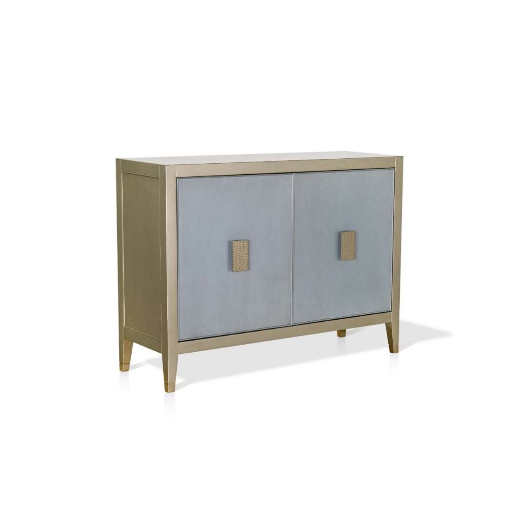 Body Finish: ProseccoDoor Fronts Finish: Arctic BlueFerrules Finish: ProseccoHardware: Brie Rectangular Hammered Pulls in ProseccoAdjustable Wood Shelf Behind Set of DoorsWidth: 48” | Height: 36” | Depth: 17”Available in all OBD FinishesCustom sizes available