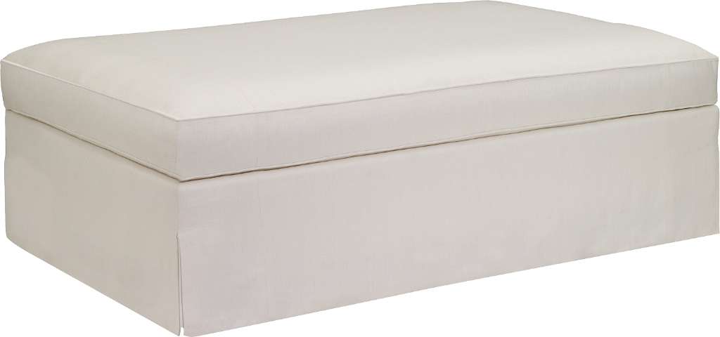 A beautiful Dressmaker skirt adorns this Silhouettes Made To Measure Ottoman. It was hand made as a 36" by 54" cocktail ottoman. Optional Dressmaker skirt to floor shown.