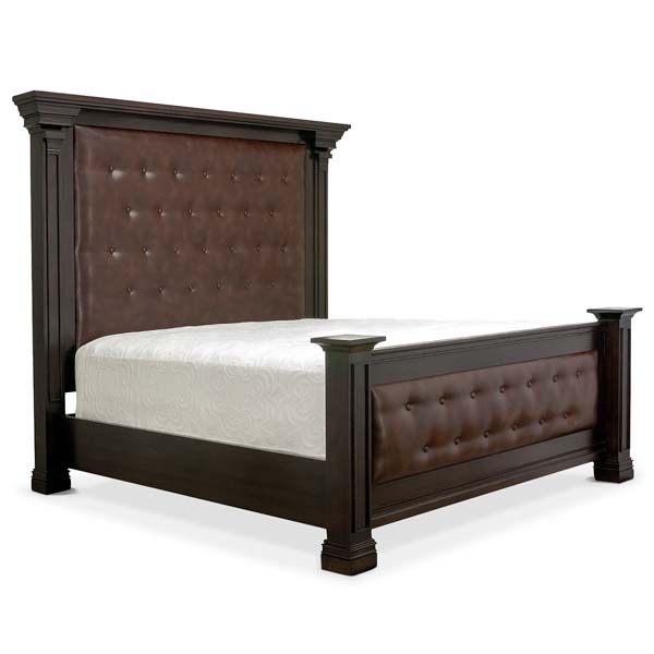 Upholstered Headboard and FootboardFinish: Dark WalnutTufted Leather: OBD Cantina CocoaCOM: 8 ydsOL: 93" | OW: 95" | OH: 84"Headboard Height: 84"Footboard Height: 36"Frame Height: 10"