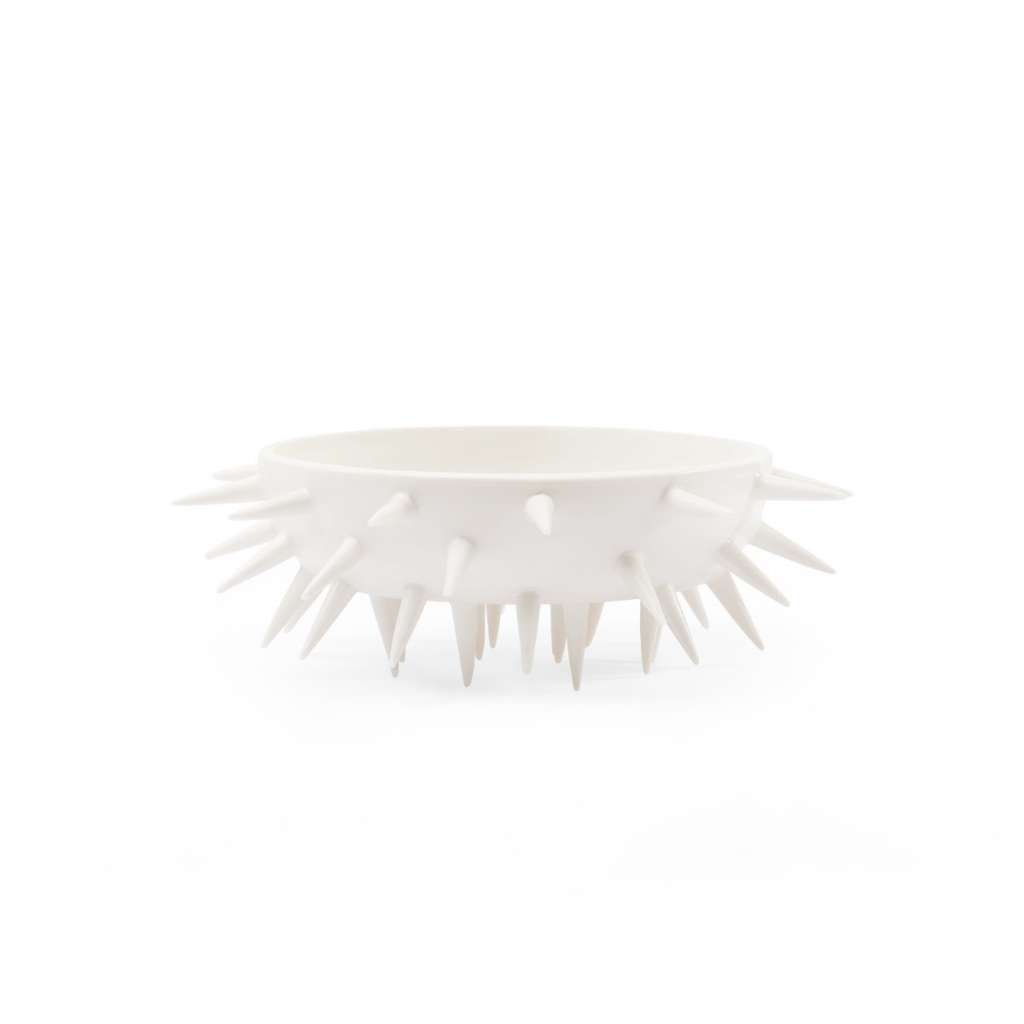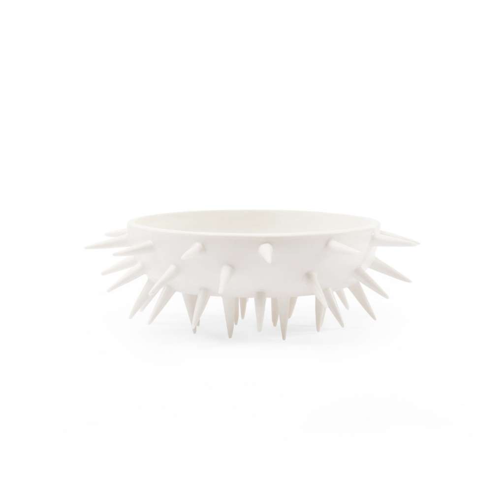 The Spine Bowl is another piece which takes inspiration from natural organic shapes. Made from Blanc de Chine porcelain, the exterior of the bowl has a matte finish while the interior maintains a glossy shine. Designed to mimic a sea urchin, this decorative piece makes a lovely catchall that can be used to hold jewelry, keys, or even a votive candle.
