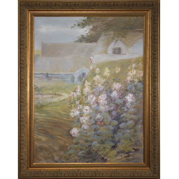NA111060 STUDY OF HOLLYHOCKS 30W ⨯ 38H inches STUDY OF HOLLYHOCKS