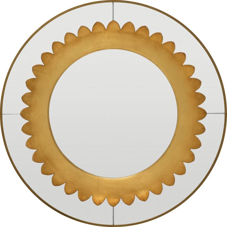 W 40 D 2 H 40 Round Gilded Mirror with Sherwood Finished Brass Decor In Stock Buy Now