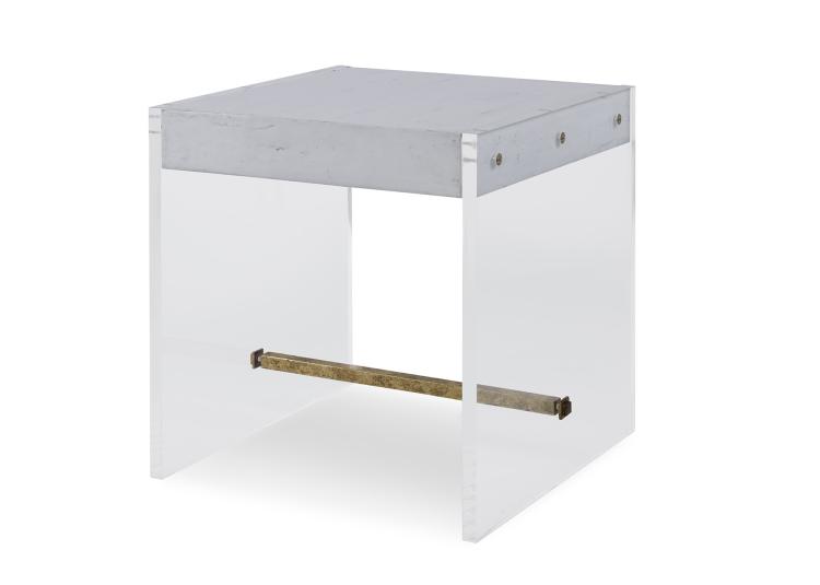 W 24 D 24 H 25 Acrylic Suspend Lamp Table with Rustic Lacquered Top In Stock Buy Now
