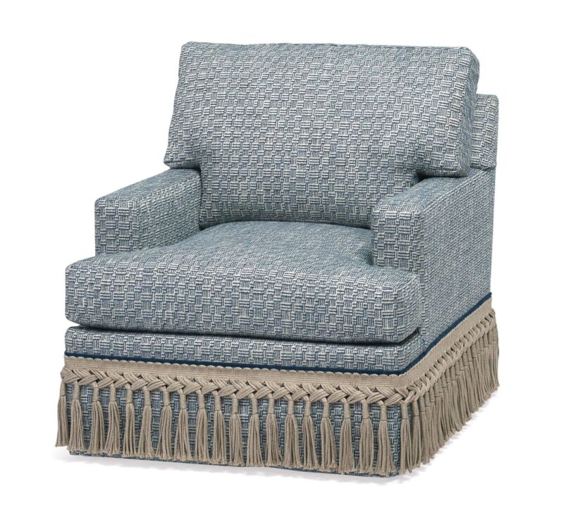 Design furniture to fit your space and style with Custom Choices. View the customizable furniture program through the collection link. Chair shown M Plush Depth 41″ 21 Chair TT Track Arm with T-seat 5″ Wide 1 Square Boxed T-Back Cushion JSB Kick Pleat Skirt with Swivel Base