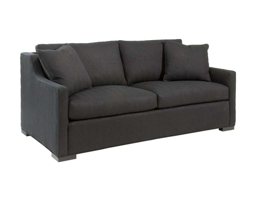 Thin track arms rise to meet the bordered back, framing a long boxed back pillow and matching boxed seat cushion. Low, wide block feet emphasize the piece’s transitional styling. Two 20” throw pillows are included for added comfort and style.