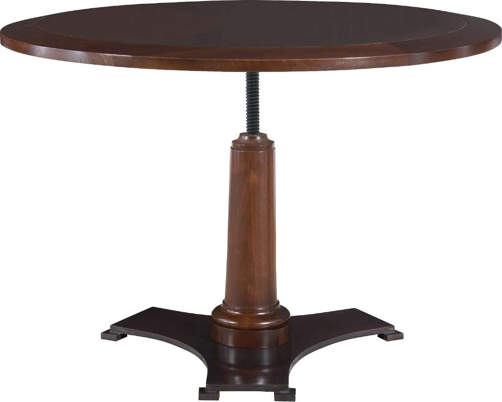 This omni-functional table spins to be adjusted to either 18” or 25” high. Please note that the table must be tightened in either the lower or upper position. It is not designed for intermediate heights. The triangular brass base is paired with a rich turned wood base for a beautiful combination of materials and function. Browned Steel base and post standard. Dark Walnut finish shown as HC7284-70. Table telescopes to choose a height of 18-inches or 25-inches to function as a cocktail table or a side table.