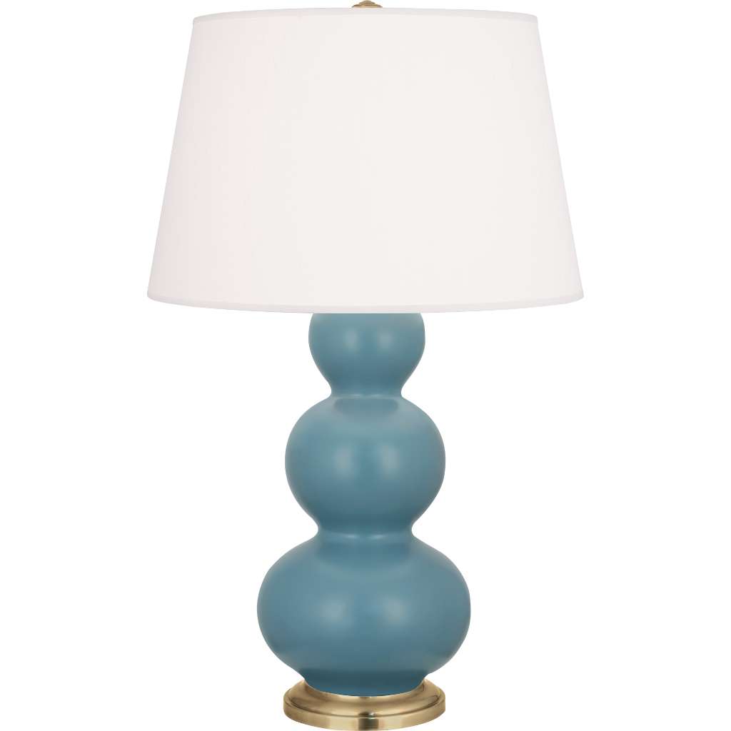 Matte Steel Blue Glazed Ceramic With Antique Brass Finished Accents