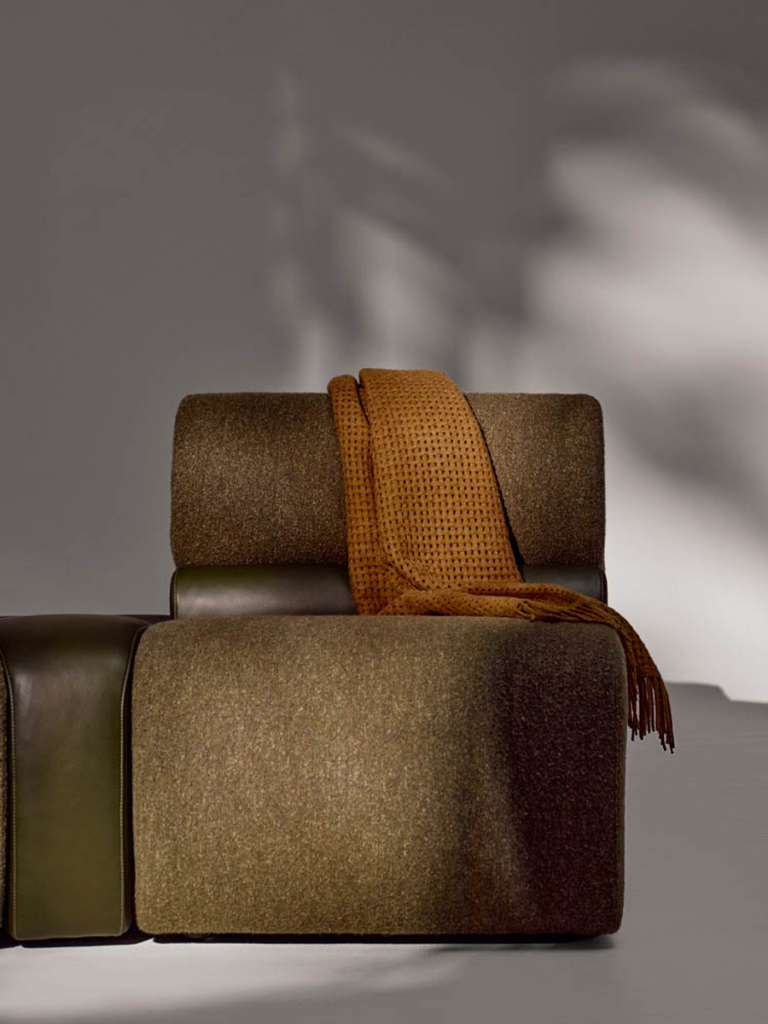 Organic elements stacked to create a wave of movement, sculpted to support the body's natural form, highlighting the unique elements through the combination of texture and tailoring.