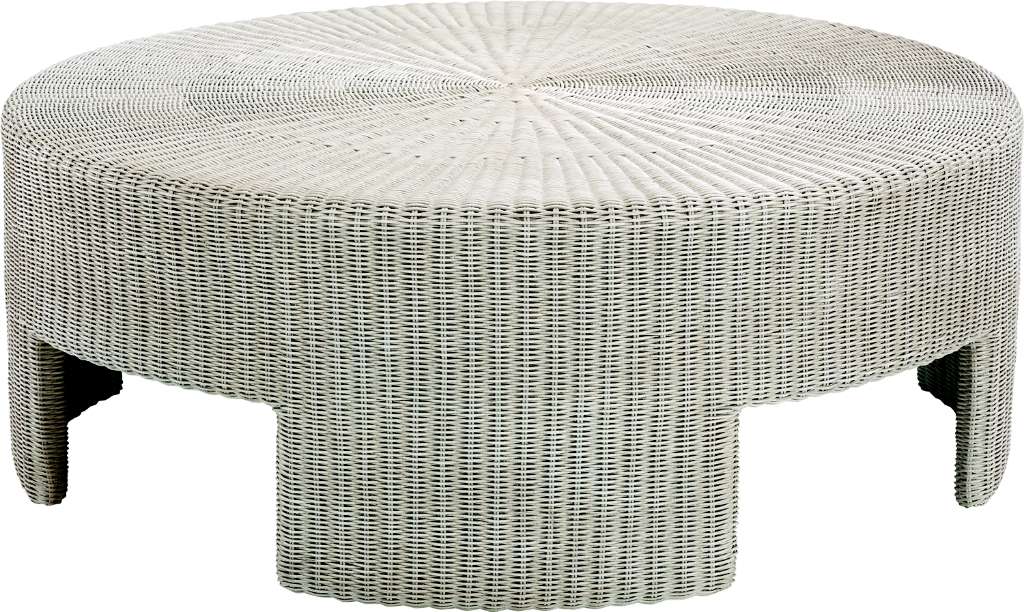 This round cocktail table features a unique wicker surface that is supported by a sturdy frame. Only available in paint finishes.