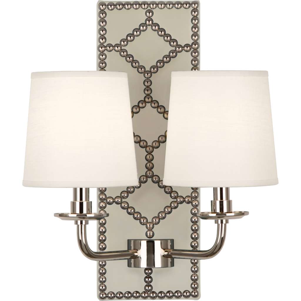 Backplate Upholstered In Bruton White Leather With Nailhead Detail And Polished Nickel Accents