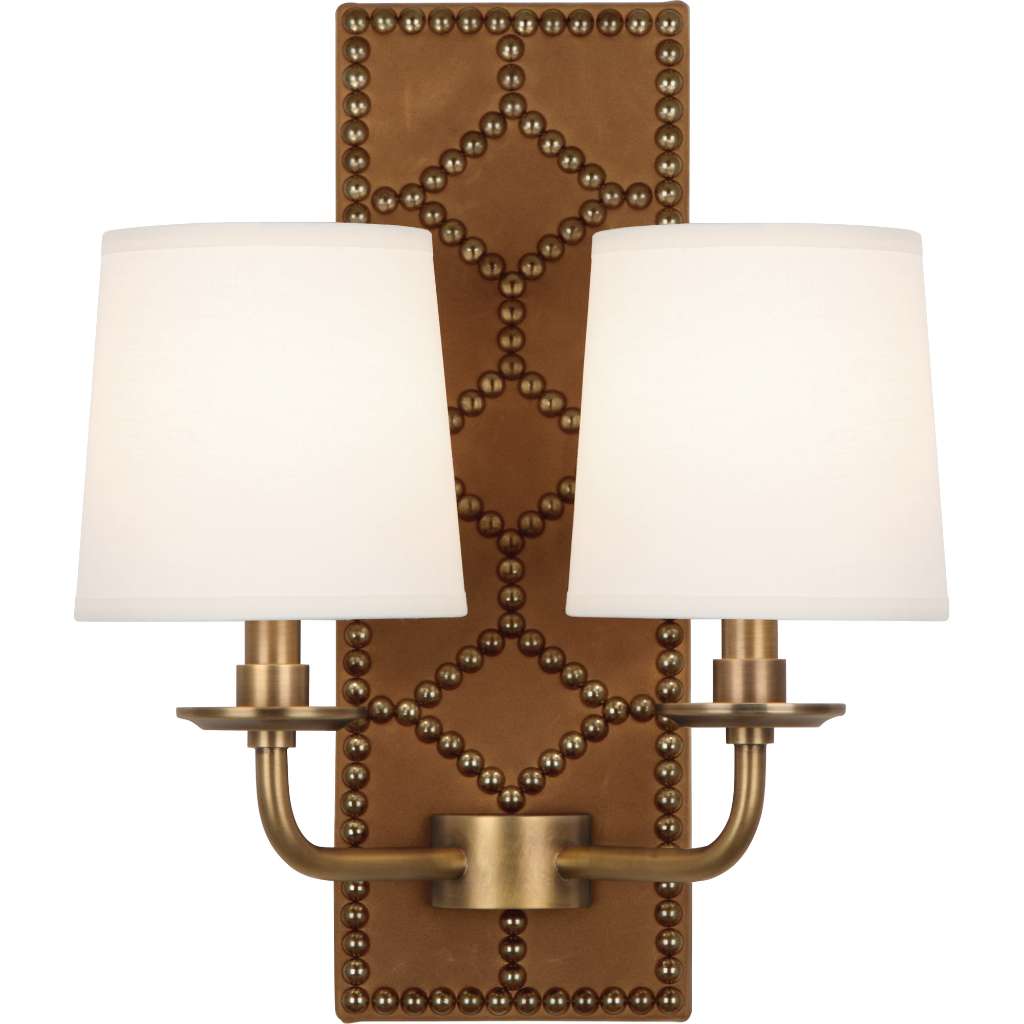 Backplate Upholstered In English Ochre Leather With Nailhead Detail And Aged Brass Accents