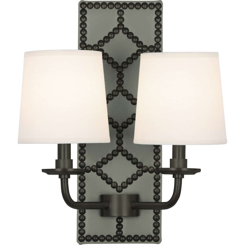 Backplate Upholstered In Carter Gray Leather With Nailhead Detail And Deep Patina Bronze Accents