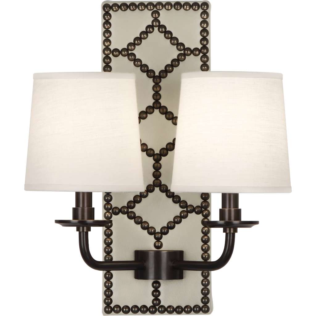 Backplate Upholstered In Bruton White Leather With Nailhead Detail And Deep Patina Bronze Accents