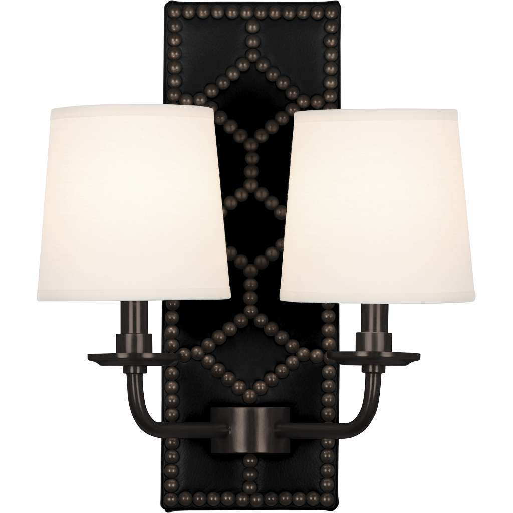 Backplate Upholstered In Blacksmith Black Leather With Nailhead Detail And Deep Patina Bronze Accents