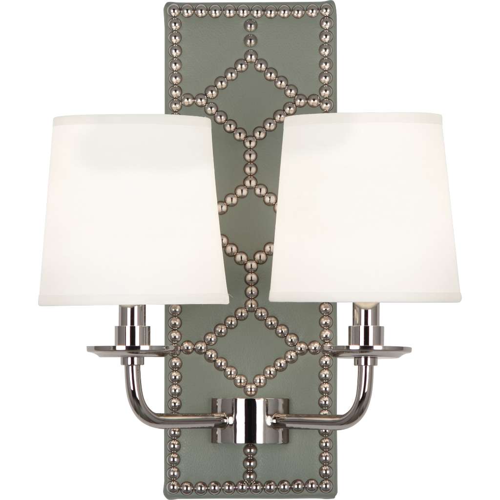 Backplate Upholstered In Carter Gray Leather With Nailhead Detail And Polished Nickel Accents