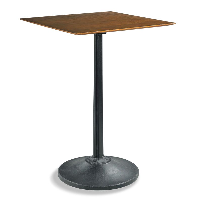 A lovely table styled in the spirit of late 19th Century French originals. A square top is mounted to a substantial cast iron tapering column over a broad concave base.