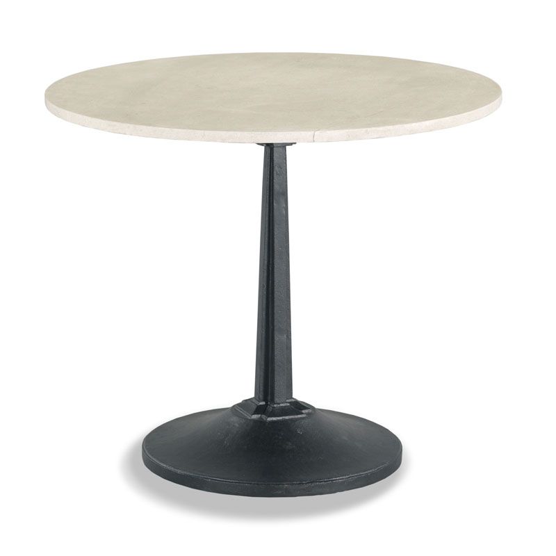 A lovely table styled in the spirit of late 19th Century French originals. A round Spanish marble top is mounted to a substantial cast iron tapering column over a broad concave base.