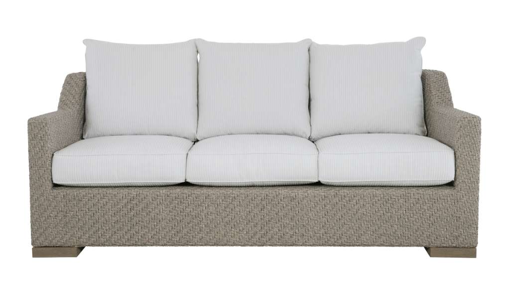 The Yara Sofa is now available as a 3 over 3 with (2) 20”, welted, TP’s standard. The Yara Outdoor Sofa by Susan Hable has a graceful shape. Its curved back is elegant from any viewpoint. The stainless-steel frame is wrapped in woven in synthetic fiber, an environmentally friendly material that is non-toxic and is recyclable, in a proprietary Graystone Weave finish. The sofa sits upon solid teak feet in Driftwood Teak finish. The Sofa is standard with three DryTech Spring-Down seat cushions, three back cushions, and two 20” welted, throw pillows. A custom fitted protective cover is sold separately as HCD8700-80-PC.