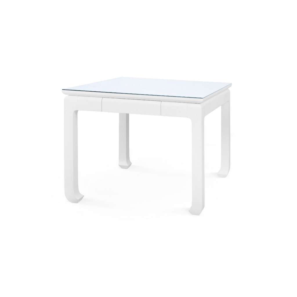 With harmonious proportions and chow-styled feet, the Bethany Game Table from Villa & House is a substantial piece. Finished in a textural, lacquered heavy linen that almost reads like plaster, the Bethany has presence. The square table has four drawers on each side of the table, the perfect place for storing your cards, game pieces, and other knick-knacks. The Bethany is equally welcomed as a neutral moment in a beachy, coastal room like a pool house or as the centerpiece of a casual, brightly lit sunroom. In a small space, like an apartment or cottage, the Bethany Game Table conveniently comes with a glass top, so it could be used as a multi-purpose dining, kitchen table or floated in an office as a work desk.