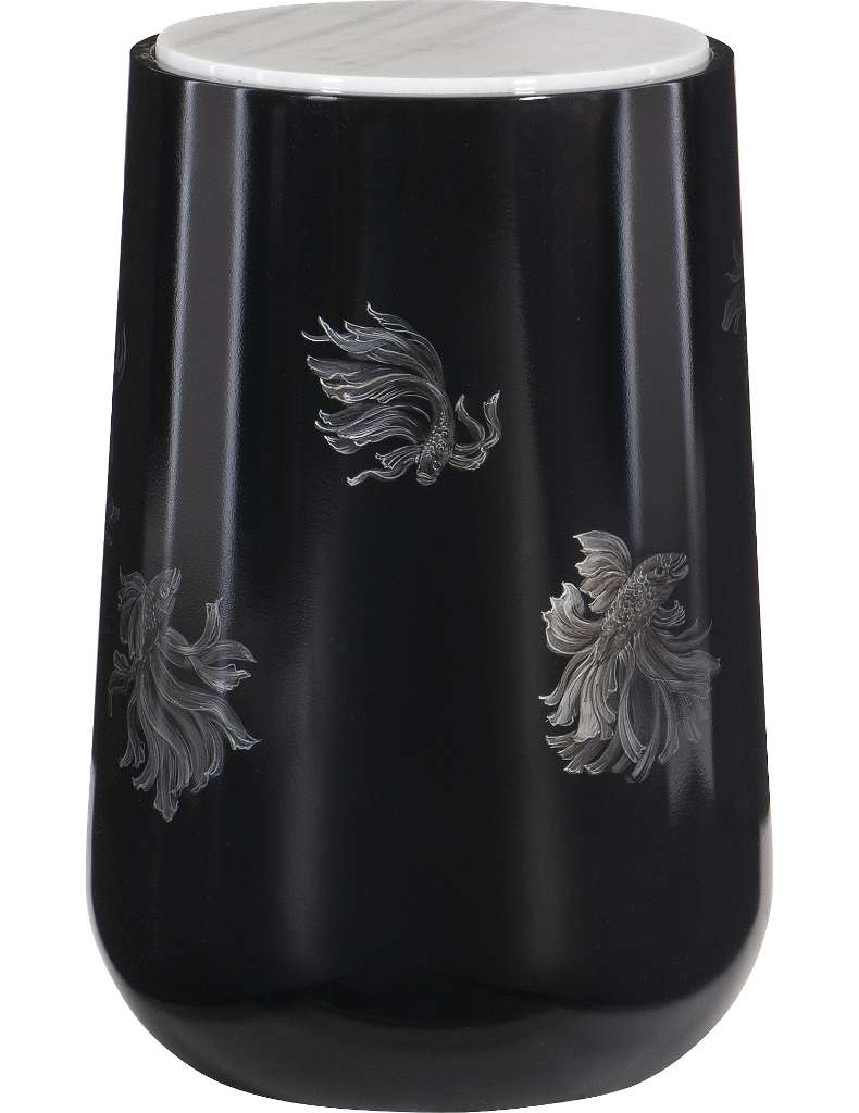 The top is an elegant creamy honed marble with soft gray veining. Composite is the primary species with an elegant creamy marble with soft gray veining top.
