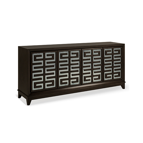 Body Finish: SomberwoodDoor Finish: Antique Mirror Behind MullionsTouch Latch DoorsWidth: 80" | Height: 36" | Depth: 18"Available in all OBD FinishesCustom sizes available