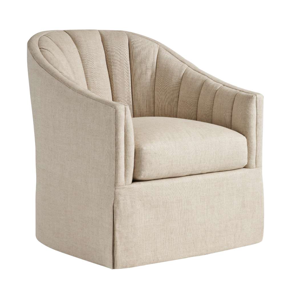 The Ferris Swivel Chair, with its namesake gentle spin, a tailored dressmaker skirt and exquisite upholstery details, is a sophisticated seat for any room. Its masterfully curved back with channel-back tailoring combine for comfort and beauty. The Ferris is also available as a fully upholstered swivel chair without the skirt as HC7230-27. Standard with dressmaker skirt. 1-piece Spring-Down seat cushion standard.