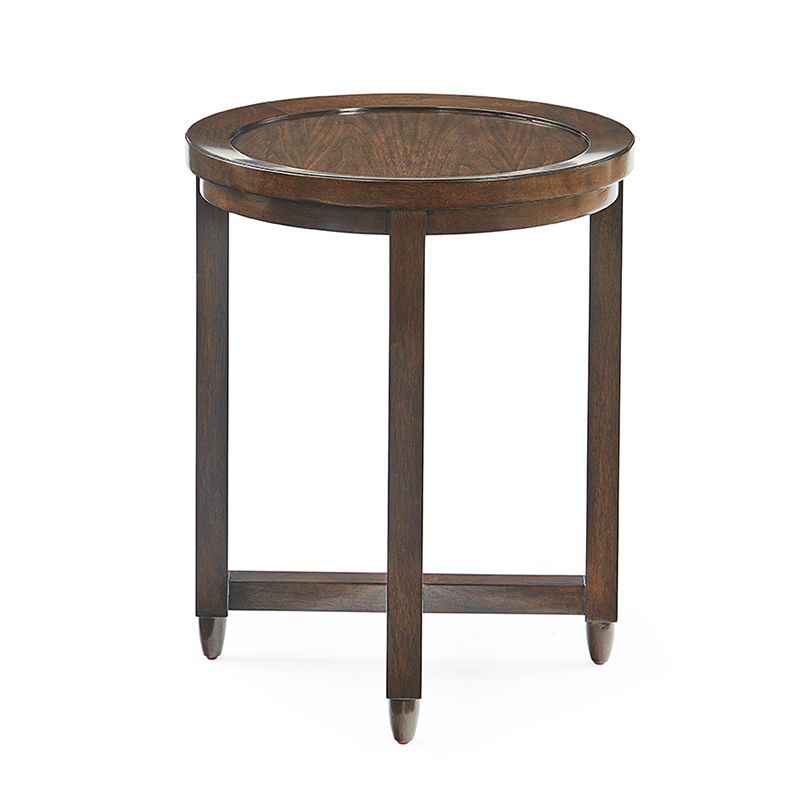 A clean unadorned form reminiscent of the modern styles made popular during the mid 20th century in Havana, Cuba. This drink table features four squared legs that support around the top over an X stretcher.